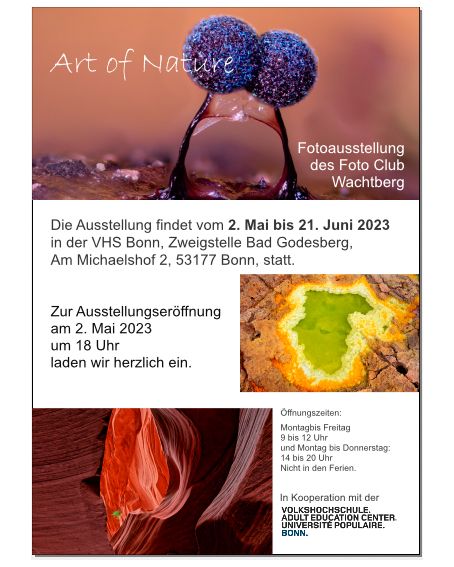 Gemeinschaftsausstellung mit dem Fotoclub Wachtberg zum Thema "Art of Nature".